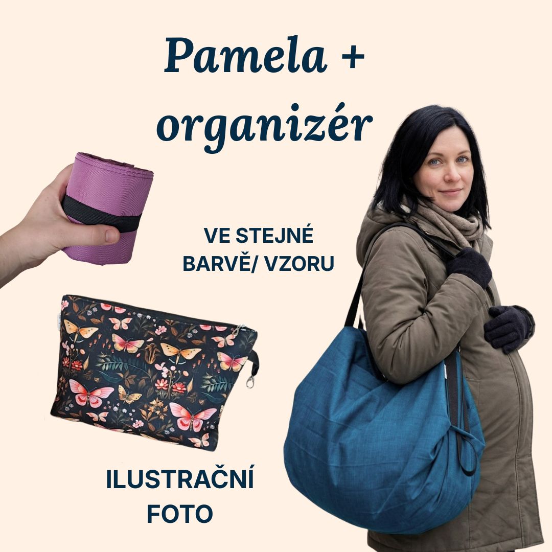Univerzální taška a skvělý pomocník pokud chceš mít ve věcech pořádek. Pamela je vždy velká 75x60 cm a organizér je někdy Klasik 35x25 cm nebo Mega 45x35 cm