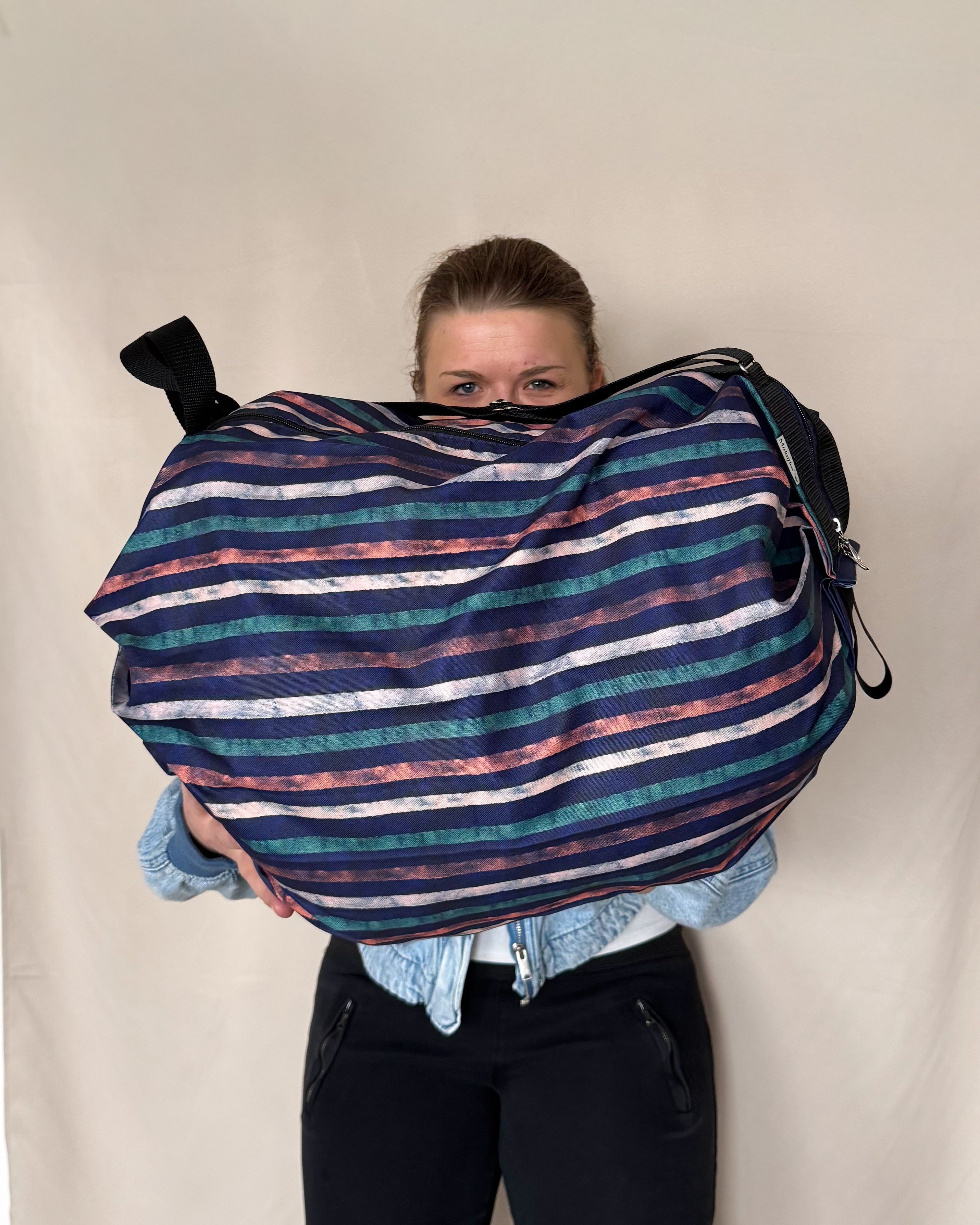 Bundy, kdyby bylo chladněji, náhradní oblečení, kdyby se namočili, gumáky, nákup, plíny, věci do bazénu pro celou rodinu? Tahle taška to dá! Neroztrhne se ani když do ní posadíš tříleťáka, odolá vodě i dětem a po akci jí snadno složíš do malé ruličky.